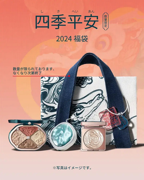 四季平安 福袋 25,000円双花彫刻ハイライト、星宿彫刻4色パレット、西湖限定プレストパウダーなど四季を意識したセット。